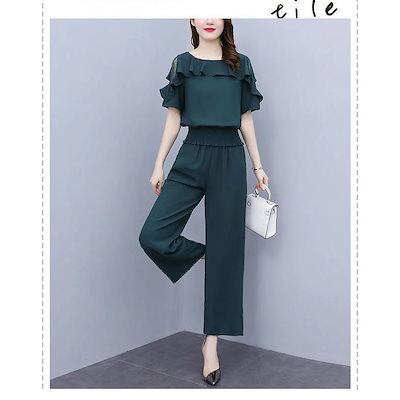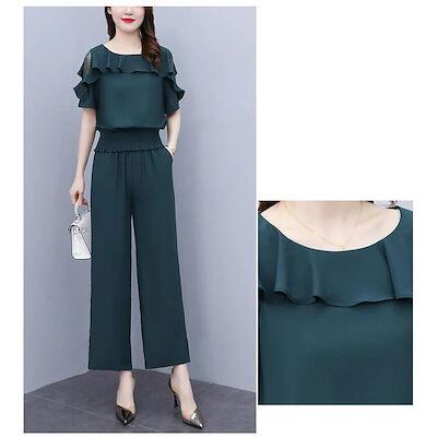 セットアップ レディース 40代 半袖 通勤 レース ワイドパンツ カジュアル オシャレ 韓国風 着痩せ 大きいサイズ