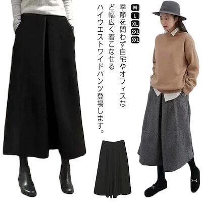 ガウチョパンツ ワイドパンツ レディース ボトムス 9分丈 ハイウエスト ウール混 スカンツ スカーチョ 楽ちん ゆったり 大きいサイズ 洗える 暖かい カジュアル 大人かわいい 通勤 オフィ