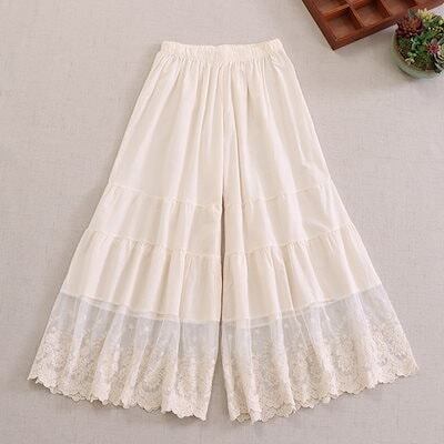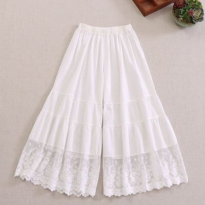 ロング 裾レースパンツ ゴム ペチパンツ パンツ 綿 体型カバー レディース レース ズボン ペチコート ボトムス フレアパンツ ワイド 刺繍 黒 白 ベージュ 大きいサイズ