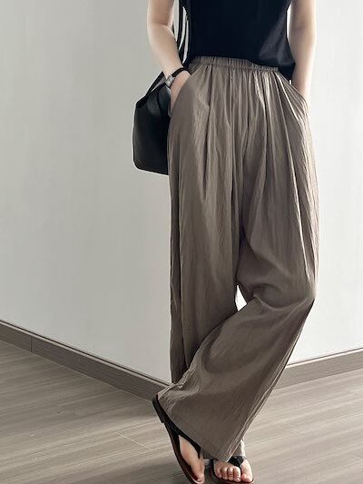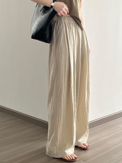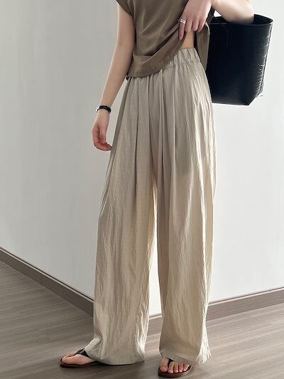 「YS良品」 夏 しわデザイン ロングパンツ ワイドパンツ ゆったり フレア 薄手 皺 スラックス レディース おしゃれ ファション メガ割