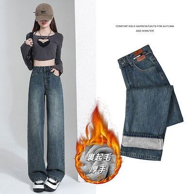 レディースジーンズ 裏起毛 厚手 暖かい ハイウエスト ロングパンツ デニムボトムス ロングデニム スキニーパンツ ワイドパンツ 裏起毛ファッション デニムパンツ