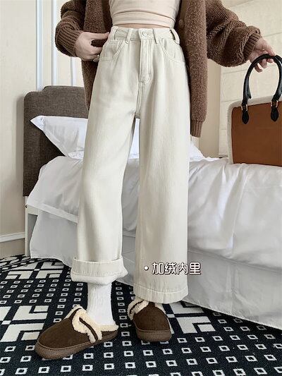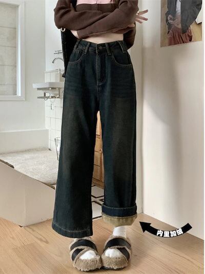 チェック柄 レディス ストレート ワイドレッグ ワイドパンツ 裏起毛ファッション カジュアルパンツ パンツ