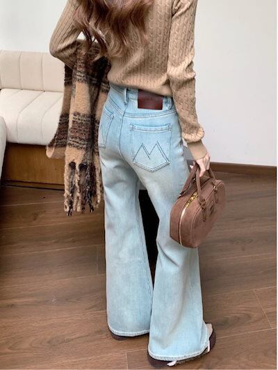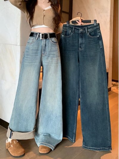 ジーンズ 裏起毛ファッション ワイドレッグ レディース 冬 ドレープ