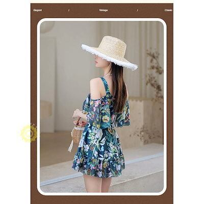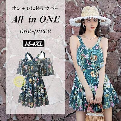 ワンピース水着 体型カバー水着 レディース ママ水着 代 30代 40代 50代 オールインワン ぽっちゃり 大きいサイズ 3L 4L ショートパンツ一