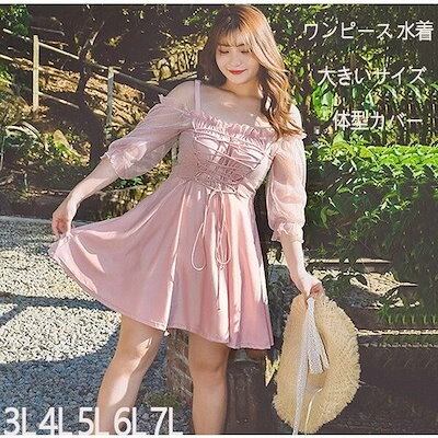 2色 水着 レディース 大きいサイズ オフショルダー 体型カバー水着 ワンピース水着 ぽっちゃり 温泉 ビーチ プール 海 水泳 セクシー 韓国風1668