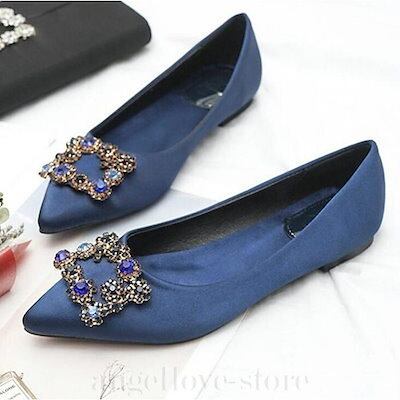 【快速出荷】10色 パンプス ビジュー ラメ フラット パンプス 痛くない ポインテッドトゥ タンコ グリッタ