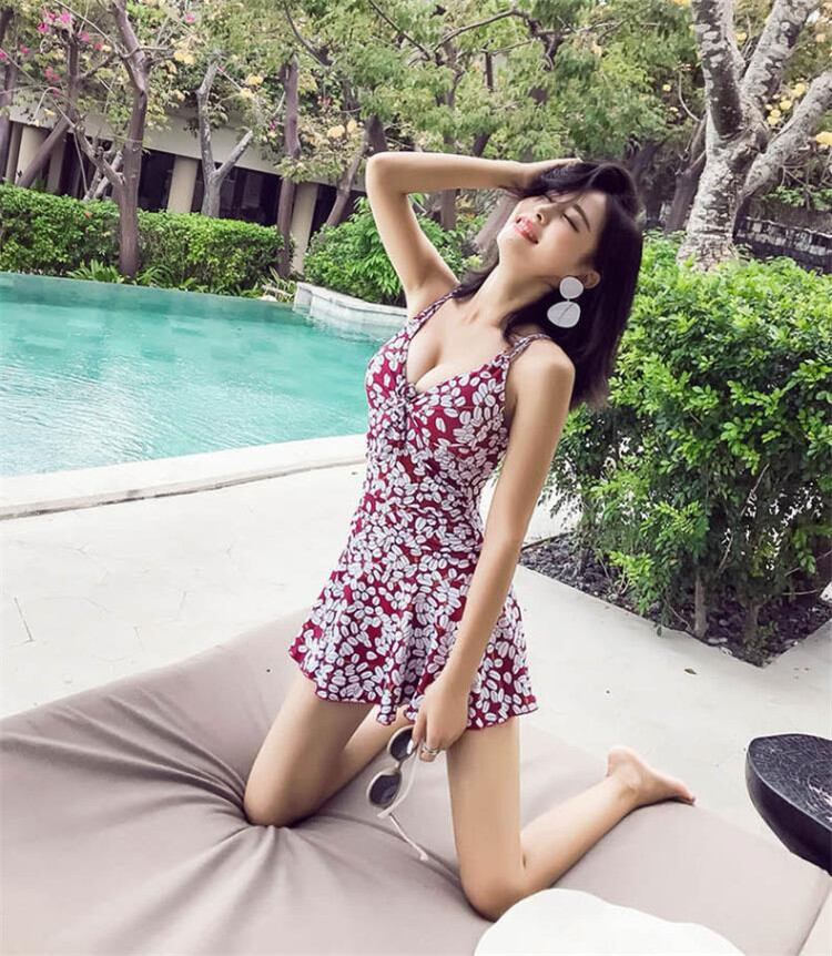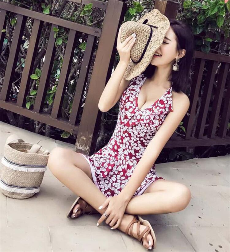 INSスタイル スリム ファッション 温泉 水泳 水着 女性 カバー腹 プリント ワンピース水着