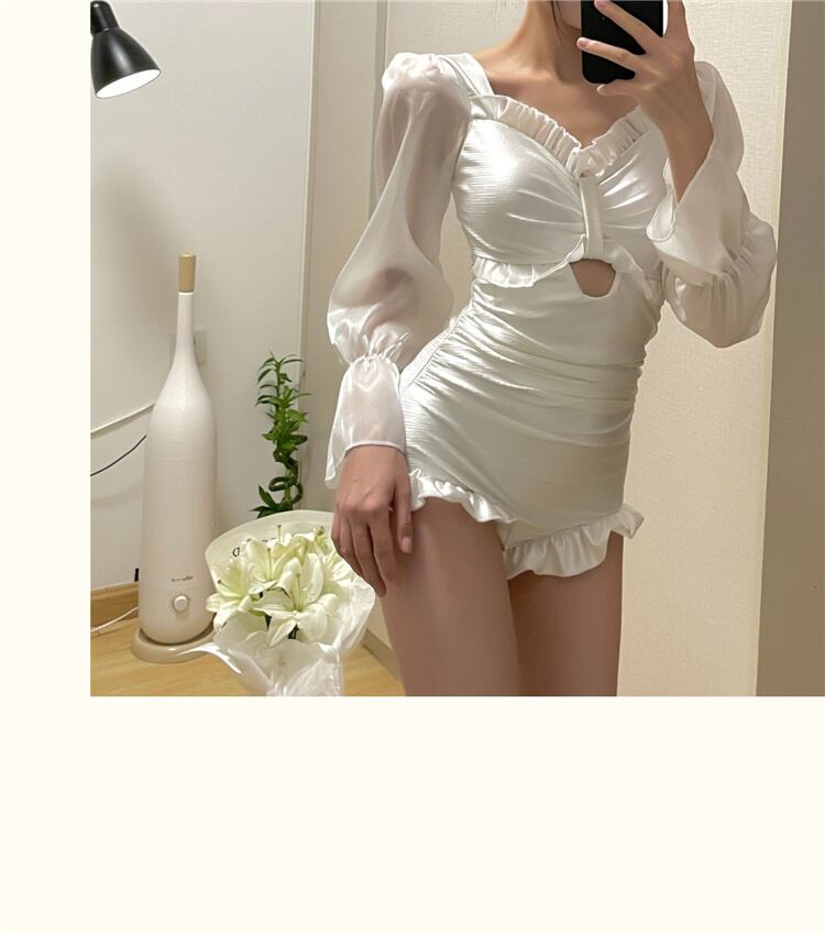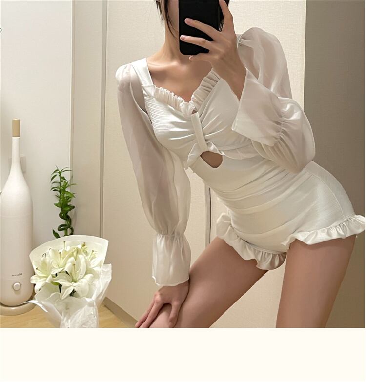 激安セール 2022新作 スリム 長袖 バンディング 背透けて Vネック 水着 トレンド 夏