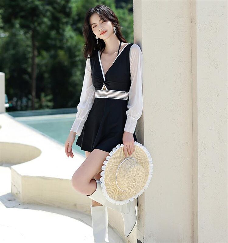 水着 薄手 ワンピース 保守的 温泉 長袖 深みのあるV セクシー 快適である