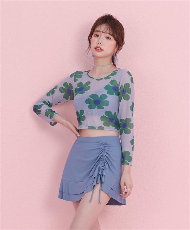 温泉 長袖 フラットアングル フローラル 水着 3点セット 快適である