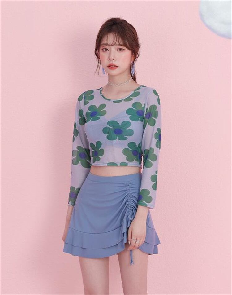 細見えする 温泉 長袖 フラットアングル フローラル 水着 3点セット 快適である★★ 水着 レディース おしゃれ ビーチ ビキニ リゾート プール 体型カバー スリム 可愛い インスタ映え セパレート 露出控えめ 盛れるハイウエスト 韓国 日焼け対策 競泳 スイムウェア日焼け防止 スタイルアップ 着痩せ
