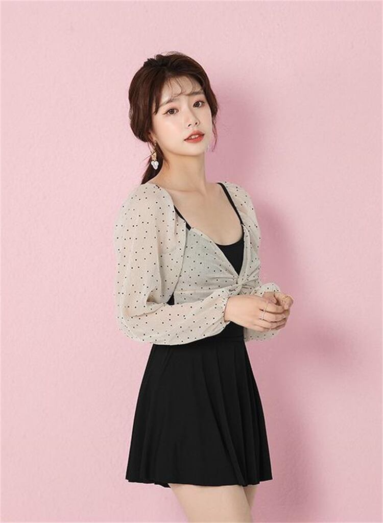 リピーターが多い 長袖 ミニドット 温泉 トレンド 水泳 快適である 水着 デザインセンス★★ 水着 レディース おしゃれ ビーチ ビキニ リゾート プール 体型カバー スリム 可愛い インスタ映え セパレート 露出控えめ 盛れるハイウエスト 韓国 日焼け対策 競泳 スイムウェア日焼け防止 スタイルアップ 着痩せ