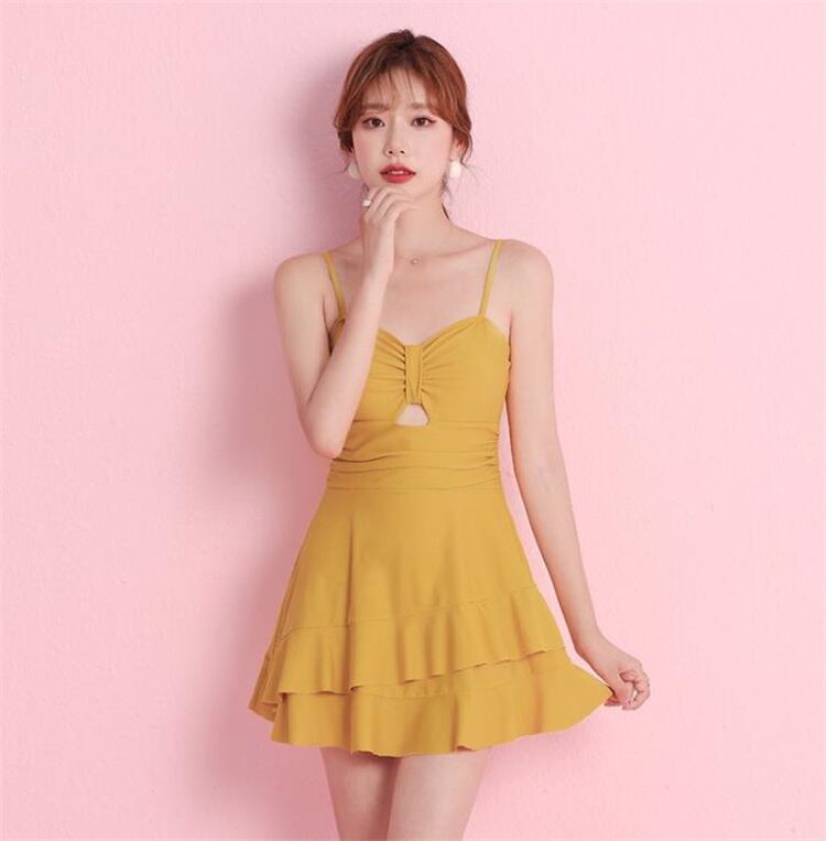 水着 カジュアル 温泉 気質 長袖 ピュアカラー ベアトップ
