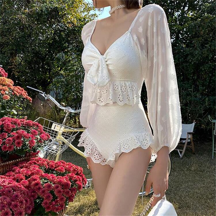 気軽に着れるあったかアイテム 気質 水着 長袖 ヤングスタイル 新品 スリム エレガント★★ 水着 レディース おしゃれ ビーチ ビキニ リゾート プール 体型カバー スリム 可愛い インスタ映え セパレート 露出控えめ 盛れるハイウエスト 韓国 日焼け対策 競泳 スイムウェア日焼け防止 スタイルアップ 着痩せ