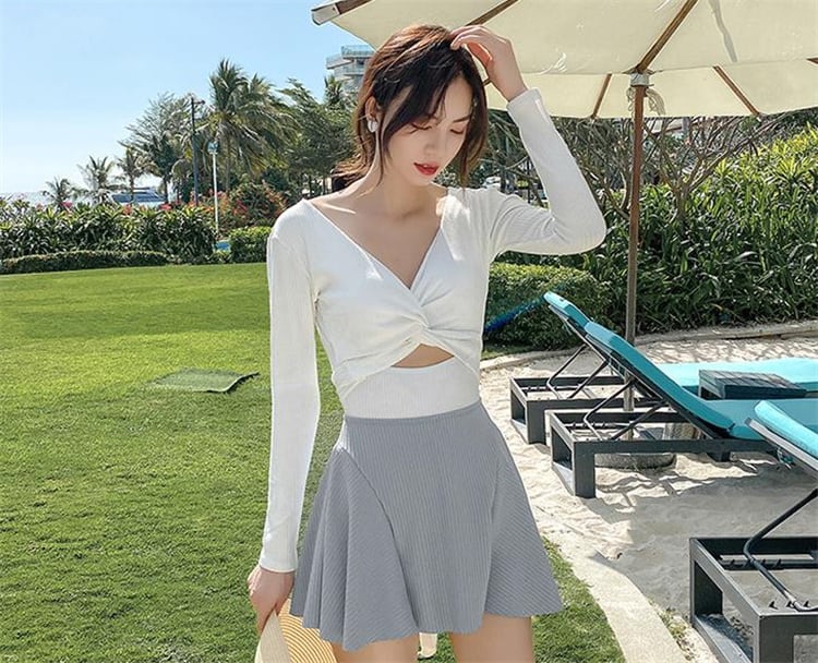 新色が安い 連体水着 長袖 日よけします スリム sweet系 スカート 学生 平角 温泉 水泳着 快適である★★ 水着 レディース おしゃれ ビーチ ビキニ リゾート プール 体型カバー スリム 可愛い インスタ映え セパレート 露出控えめ 盛れるハイウエスト 韓国 日焼け対策 競泳 スイムウェア日焼け防止 スタイルアップ 着痩せ