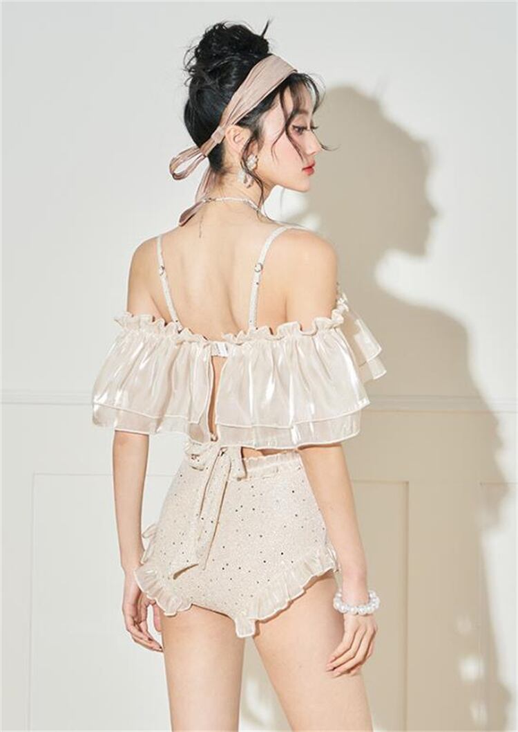 連体水着 水着 一字肩 フリル セクシー ストラップ スリム リゾート 温泉