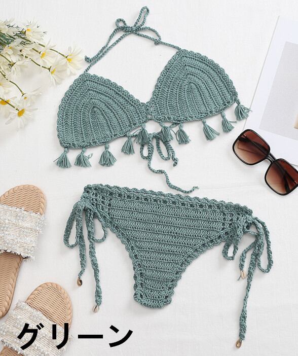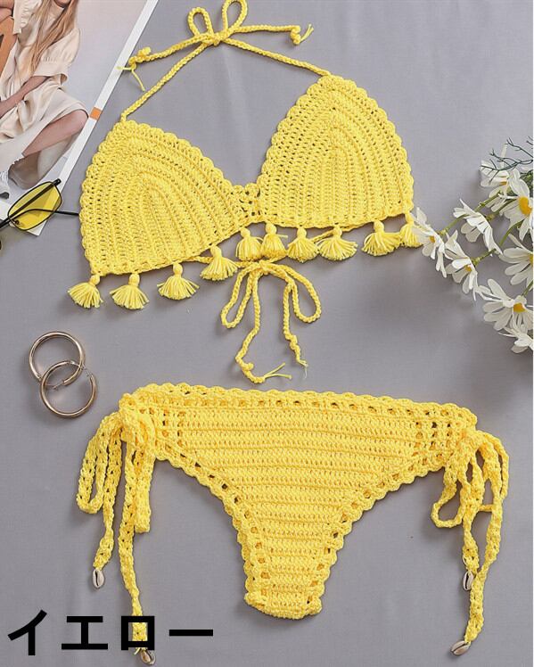 リゾートにピッタリなハワイアン香るクロシェ編みビキニセット♪■素材:アクリル