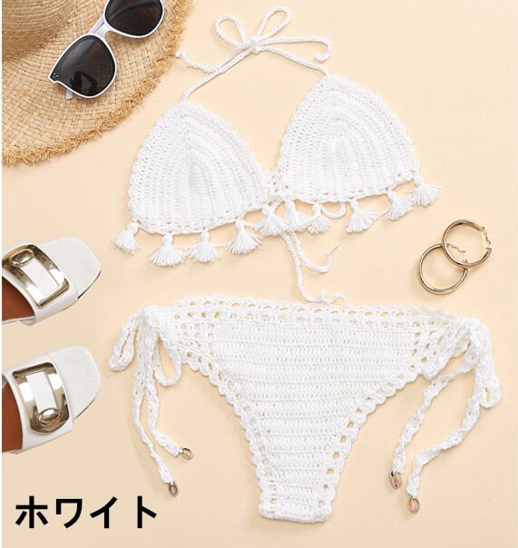 クロシェレースビキニ 水着 ニット ビキニ ビーチ プール 海 リゾート 女性 セットアップ 夏 クロシェ編み★★ 水着 レディース おしゃれ ビーチ ビキニ リゾート プール 体型カバー スリム 可愛い インスタ映え セパレート 露出控えめ 盛れるハイウエスト 韓国 日焼け対策 競泳 スイムウェア日焼け防止 スタイルアップ 着痩せ