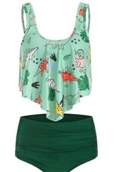 ハイウエスト ストライプ ハワイ ロータスリーフ リーフ プリント 水着