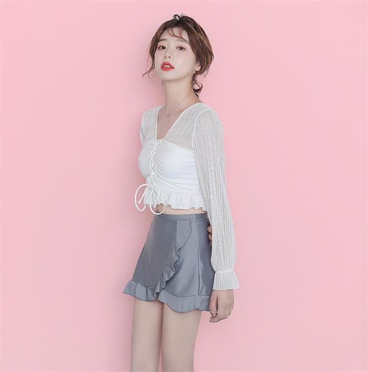 きちんと感をGET 長袖 温泉 秋 冬 水着 ショーシン スモールブレストギャザー★★ 水着 レディース おしゃれ ビーチ ビキニ リゾート プール 体型カバー スリム 可愛い インスタ映え セパレート 露出控えめ 盛れるハイウエスト 韓国 日焼け対策 競泳 スイムウェア日焼け防止 スタイルアップ 着痩せ