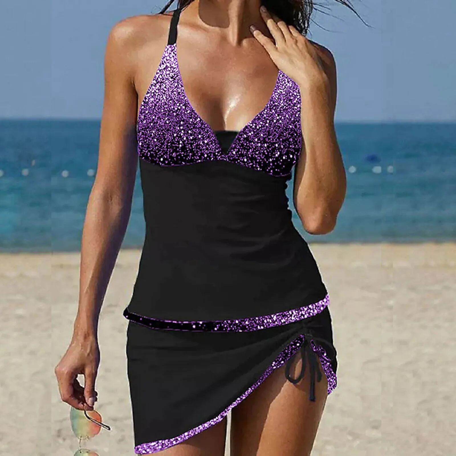 ツーピースのきらびやかなタンキニセット、ハイウエスト水着、ビキニモノキニ、女性用スポーツスーツ、分割水着 ビキニ Tシャツ T240618235218_06