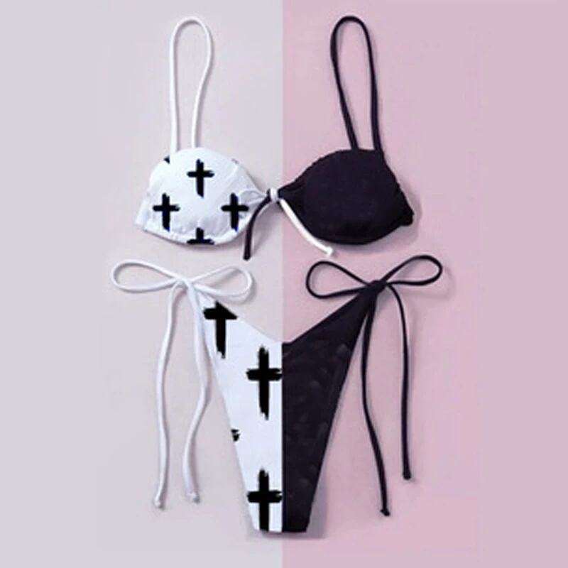 女性のゴシックビキニ水着セット、マイクロブラ、Tバックビキニ、2ピースゴススカルスイムウェア、e girl beachwear、Cute、y2k ビキニ Tシャツ T240618235356_01
