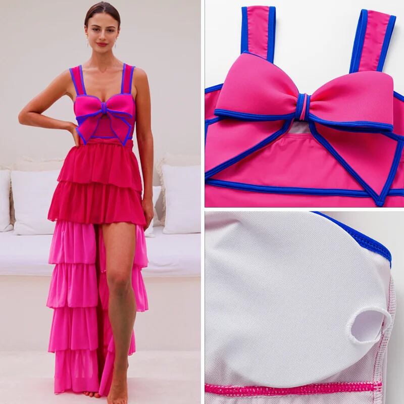 レトロなワンピースの女性用水着,スカート付きの蝶ネクタイ水着,セクシーな水着,モノキニ,ビーチウェア,黒と白,2022 ビキニ Tシャツ T240618235504_03