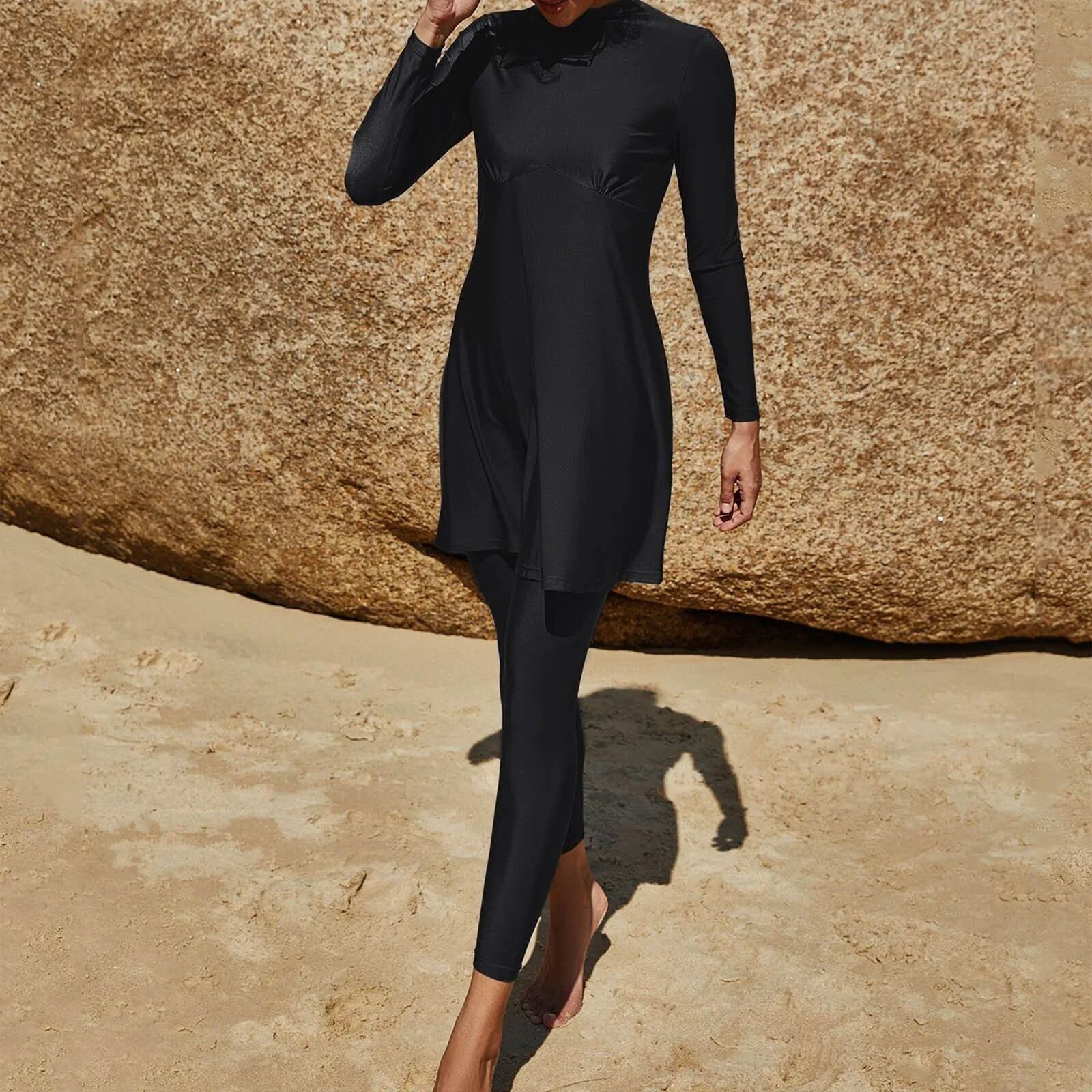女性用長袖ビーチウェア,ツーピース水着,カバーアップ水着,イスラム教徒,夏 ビキニ Tシャツ T240618235602_01