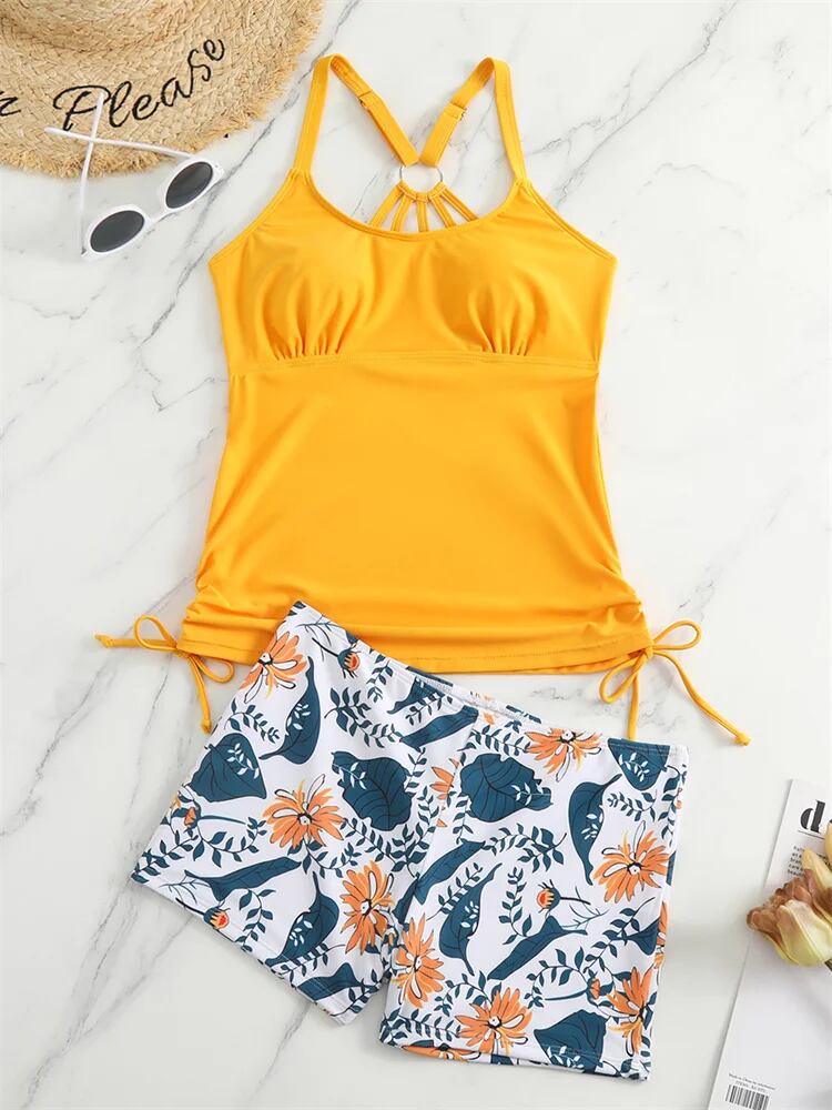 女性用ツーピース水着,タンキニ,無地プリント,ショーツ,ビーチウェア,ニューコレクション2023 ビキニ Tシャツ T240618235716_01