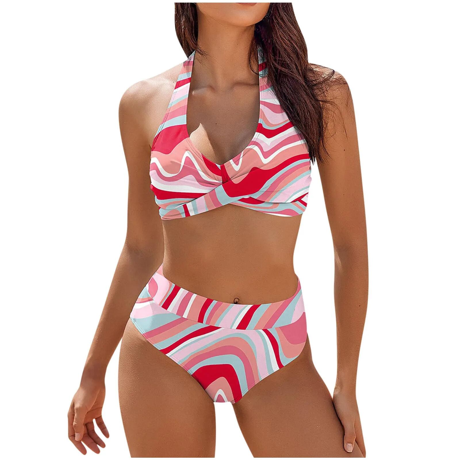 女性用ハイウエストビキニセット,カラーブロック,フローラルプリントのバスト水着,ファッショナブルなビキニ,2022, 2個 ビキニ Tシャツ T240618235731_05