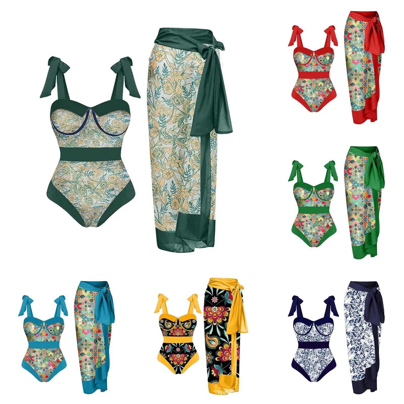 カラフルな花柄の水着,ヴィンテージ,女性用,ワンピース,カバーアップ,モノキニ,セクシー,ビーチウェア ビキニ Tシャツ T240618235839_06