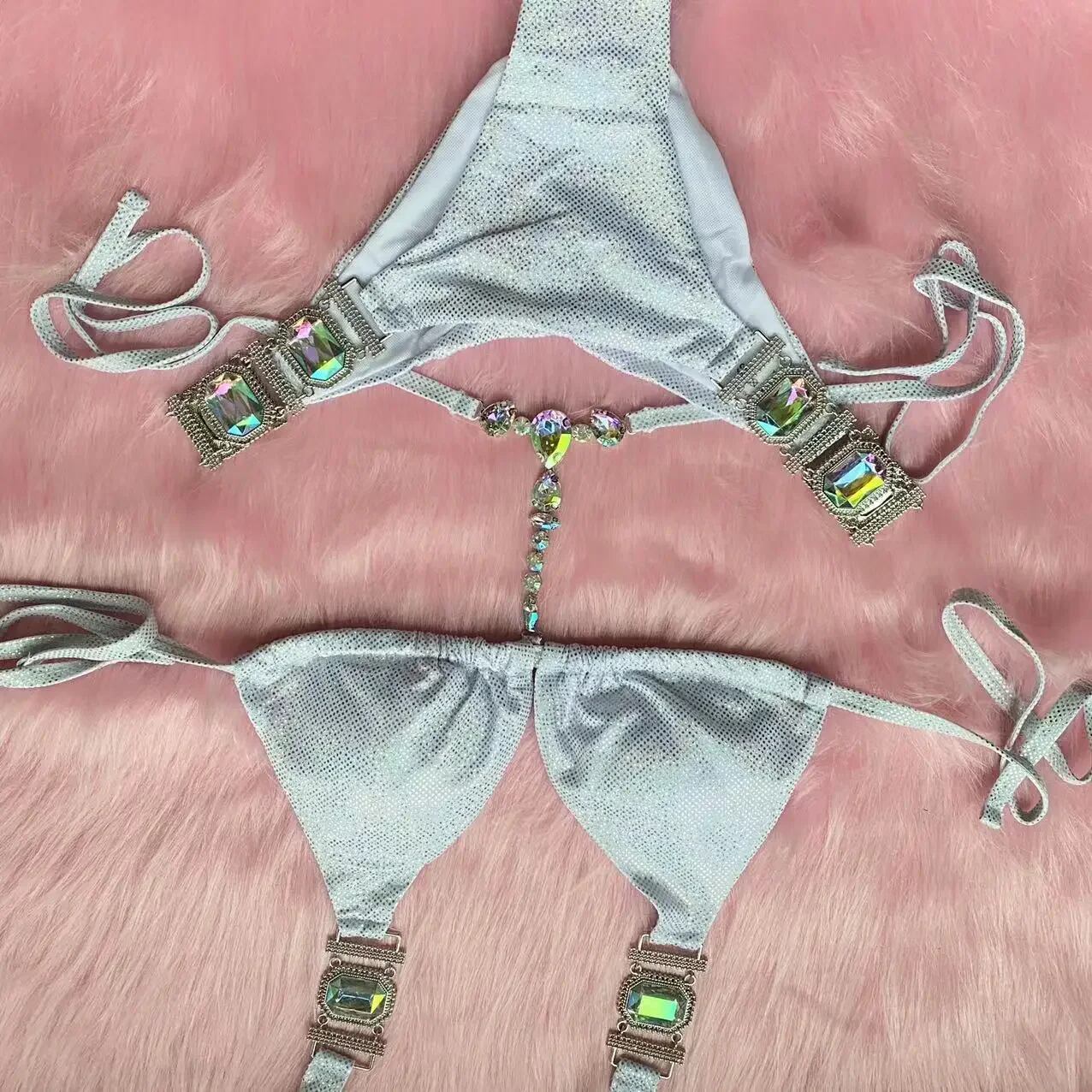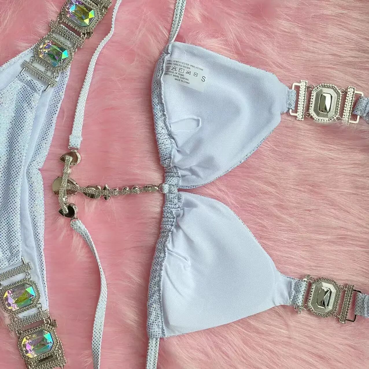 女性のための光沢のあるビキニ,ラインストーン付き水着,ホルターネック水着,セクシーなビーチ水着 ビキニ Tシャツ T240619002451_01