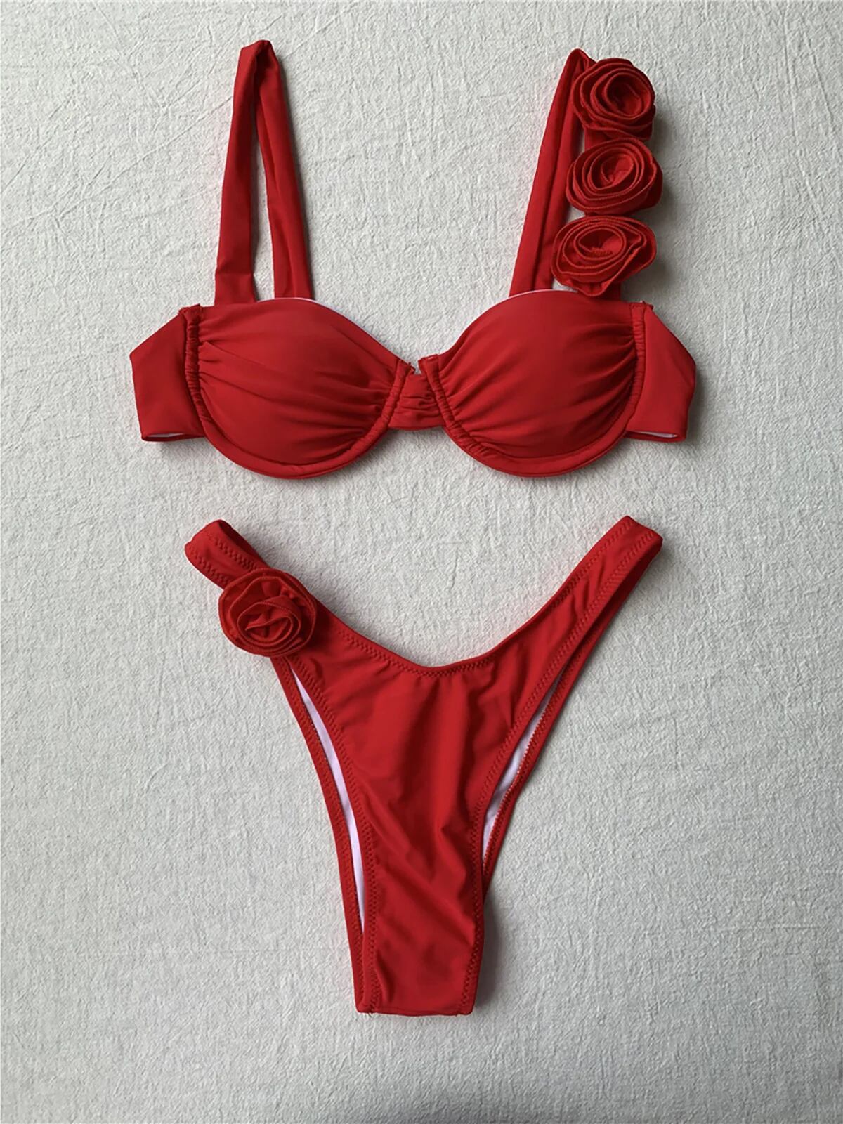 女性用ツーピースブラジル水着,3Dフラワー付きセクシービキニ,女性用水着,女性用バスセット,K4943 ビキニ Tシャツ T240619002657_02