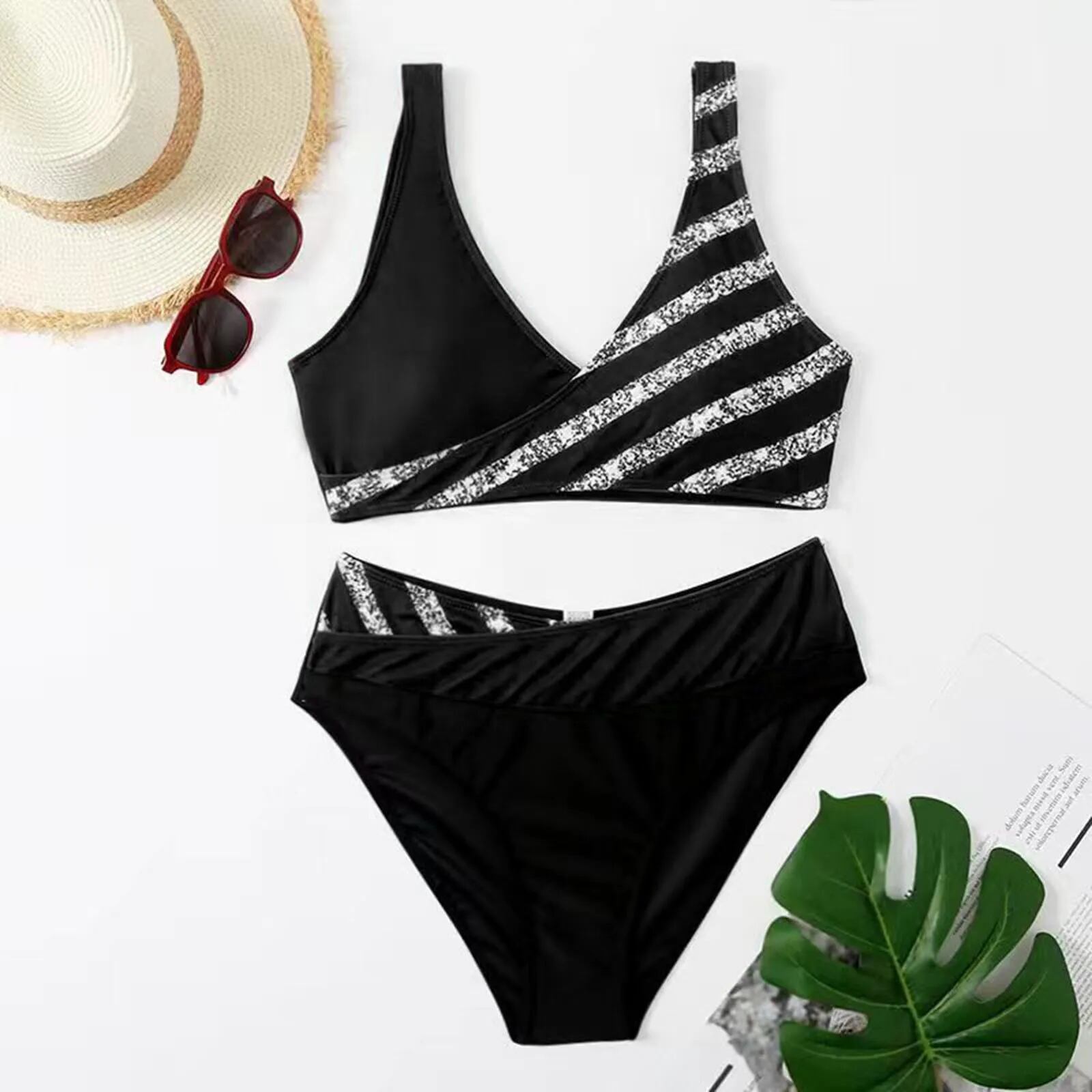 女性用プリントホルタービキニセット,ハイウエスト水着,セクシーなビーチウェア,水着2021 ビキニ Tシャツ T240619002910_02