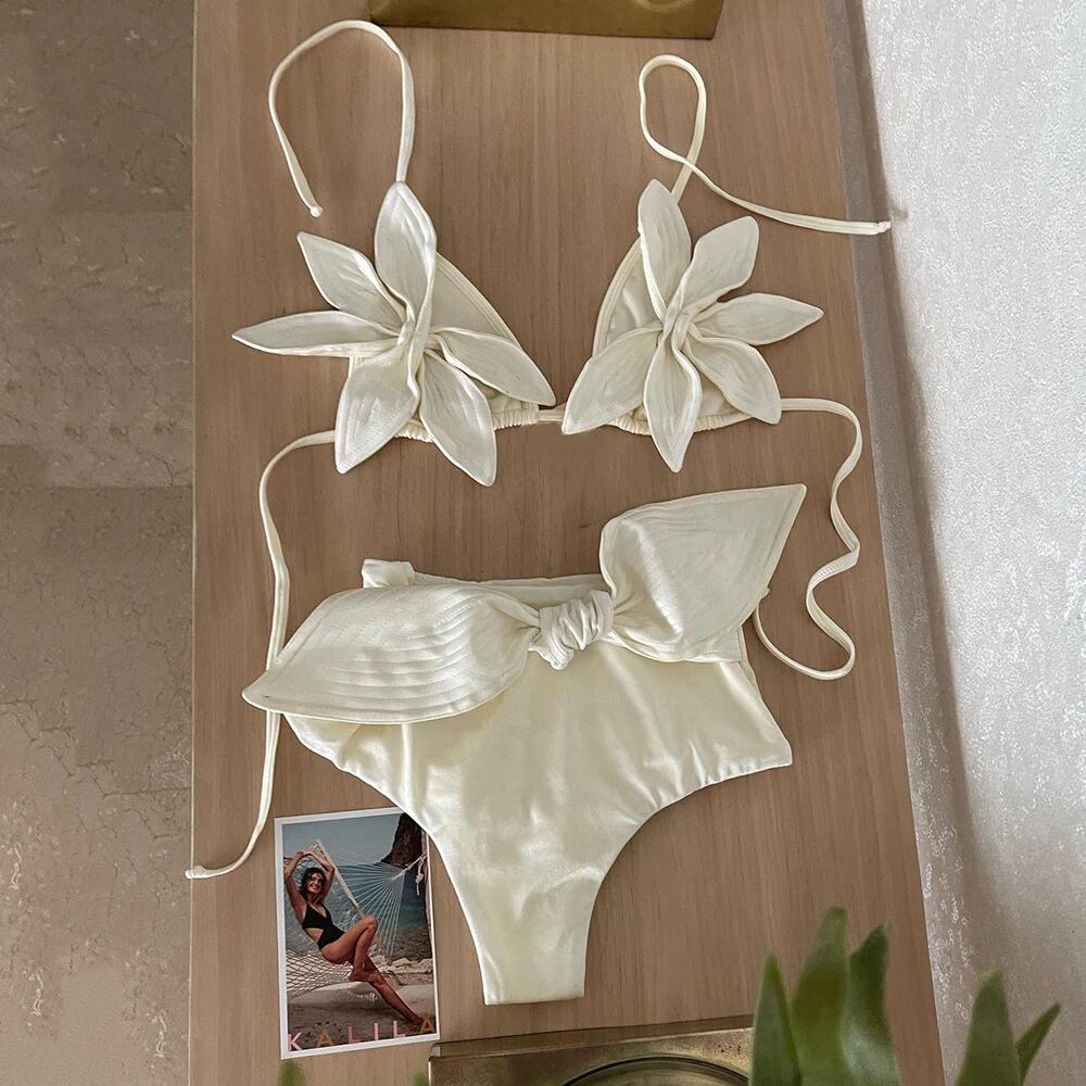 女性用フローラルレース水着,Vネックとハイウエストのツーピースセット,蝶ネクタイ付き ビキニ Tシャツ T240619002939_01