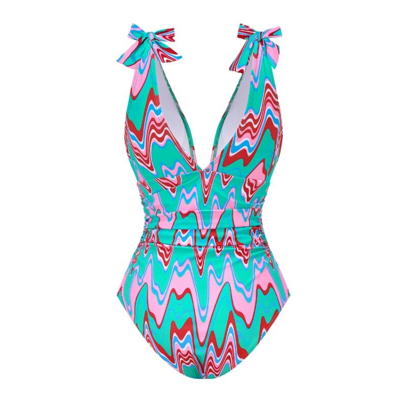 女性用蝶ネクタイ付きワンピース水着,ストラップ,タッセル付きスカート,ビーチウェア,ラグジュアリー,休暇用ウェア,新しい2024 ビキニ Tシャツ T240619003545_07