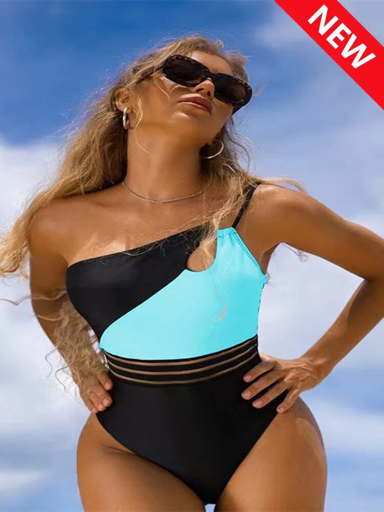 女性用ニットパネルパッチワークビキニセット,非対称水着,インデント,ビーチウェア,水着,2021, 1ユニット ビキニ Tシャツ T240619003702_08