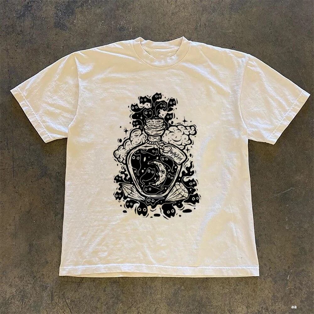 女性用カワイイマジックキャットプリントTシャツ,半袖トップス,ラウンドネック,ファッショナブルで用途の広い,y2k ボトム ボトムス ズボン T240619133658_01