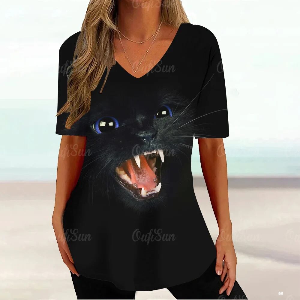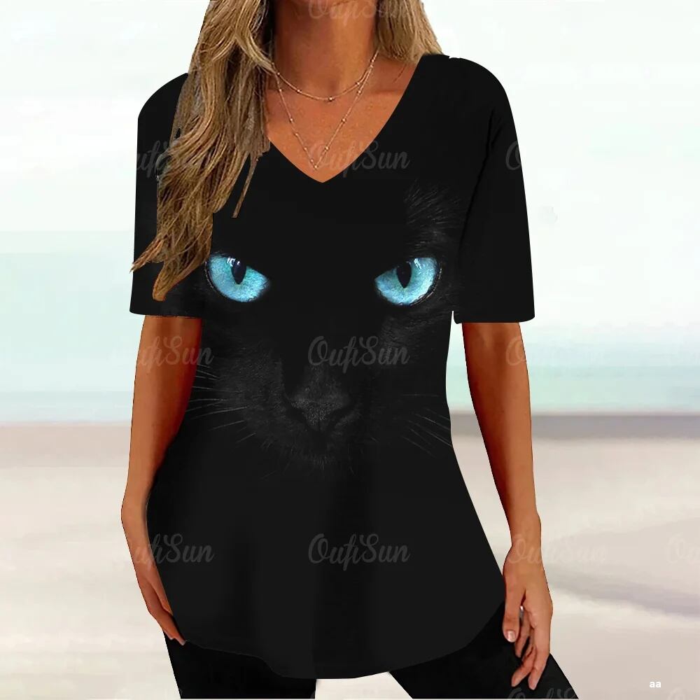 カワイイ 女性の猫の絵が描かれたTシャツ,半袖原宿の夏のトップス,だぶだぶのTシャツ,婦人服 ボトム ボトムス ズボン T240619165035_03