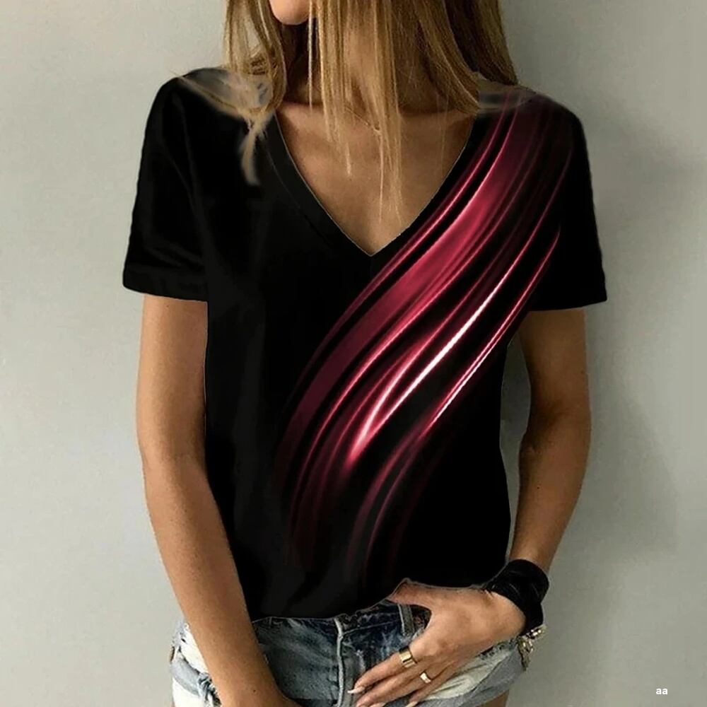 女性用Vネック半袖Tシャツ,Vネック,ファッショナブル,ストライプ,3Dプリント,カジュアルウェア,新しいコレクション2024 ボトム ボトムス ズボン T240619165532_09