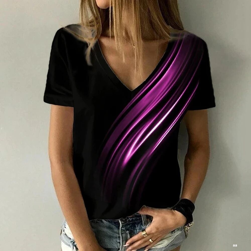 女性用Vネック半袖Tシャツ,Vネック,ファッショナブル,ストライプ,3Dプリント,カジュアルウェア,新しいコレクション2024 ボトム ボトムス ズボン T240619165532_10