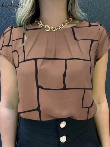 Zanzea-女性用ボヘミアンカジュアルプリントブラウス、半袖、ラウンドネックシャツ、ホリデーチュニックトップス、エレガントな作業服、夏、2024