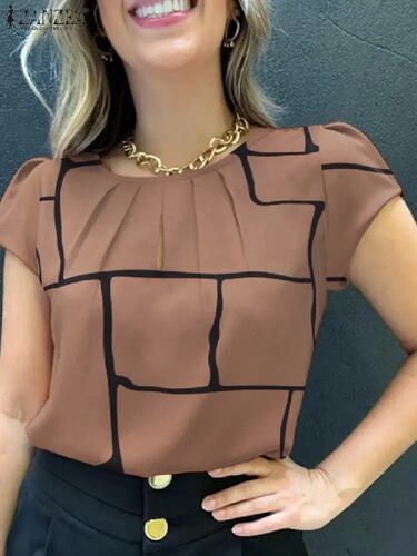 Zanzea-女性用ボヘミアンカジュアルプリントブラウス、半袖、ラウンドネックシャツ、ホリデーチュニックトップス、エレガントな作業服、夏、2024