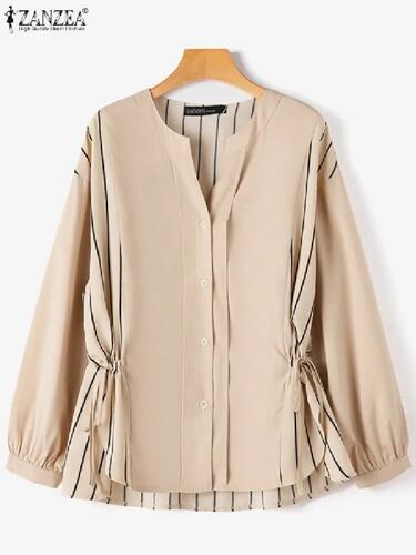 Zanzea-女性用長袖ブラウス,パッチワークのエレガントなカジュアルチュニック,ルーズフィット,韓国のファッション,夏,2024★2