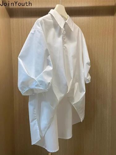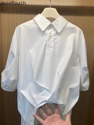 女性のための半袖特大シャツ、シックなトップス、不規則なブラウス、魅力的なファッション、カジュアルなヴィンテージ、夏