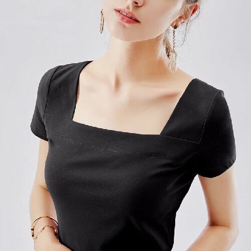 半袖,スクエアカラー,ルーズフィットのサマーブラウス