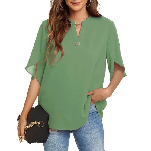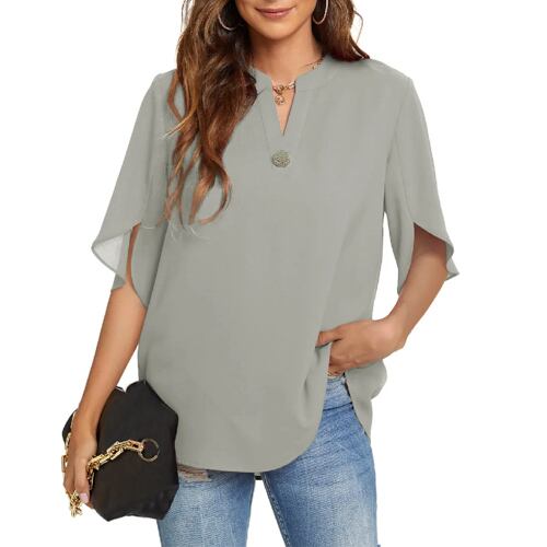 女性用Vネック半袖シフォンブラウス,カジュアルボタンシャツ,単色ストリートウェア,スリムフィット,春,夏,2021
