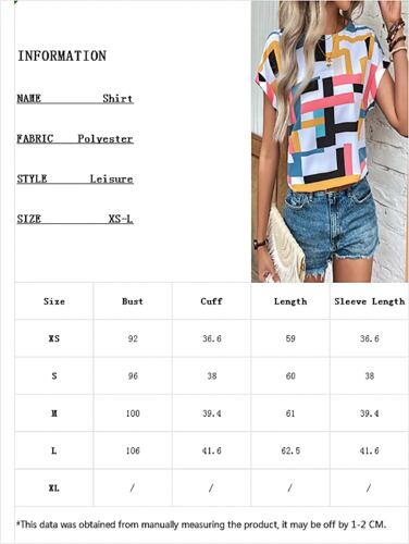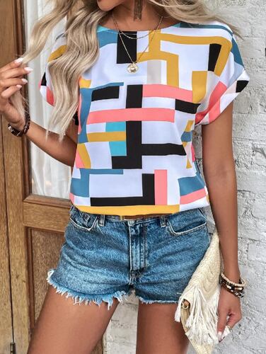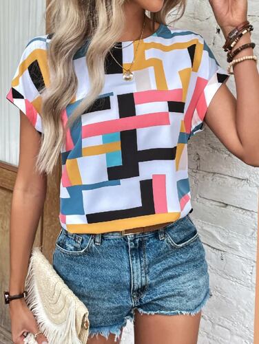 女性の幾何学的なプリントバットスリーブルーズプルオーバー、カジュアルシャツ、プレミアムTシャツ、オフィス、新しいファッション、2024