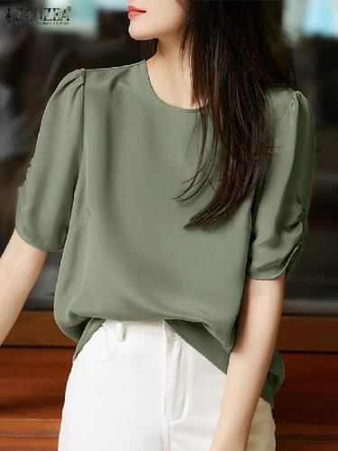 Zanzea-o-女性用ネックブラウスシャツ,半袖シャツ,無地のパーティーチュニック,エレガントな女性のシャツ,オフィスのファッション,夏,2022