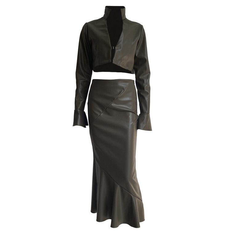 レディース 長袖 コート スカート 2点セット カジュアル セクシー 透かし彫り